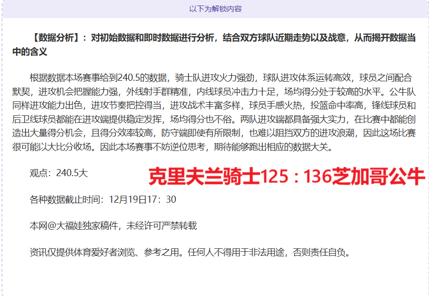 【基本面分析】:包括双方球队状态、阵中情况的多项数据分析