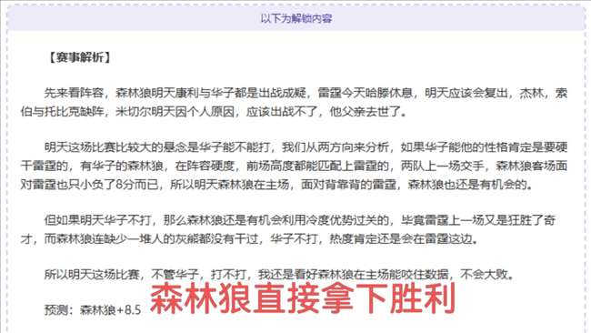 以下为解锁内容:含赛事解析+数据分析+观点参考